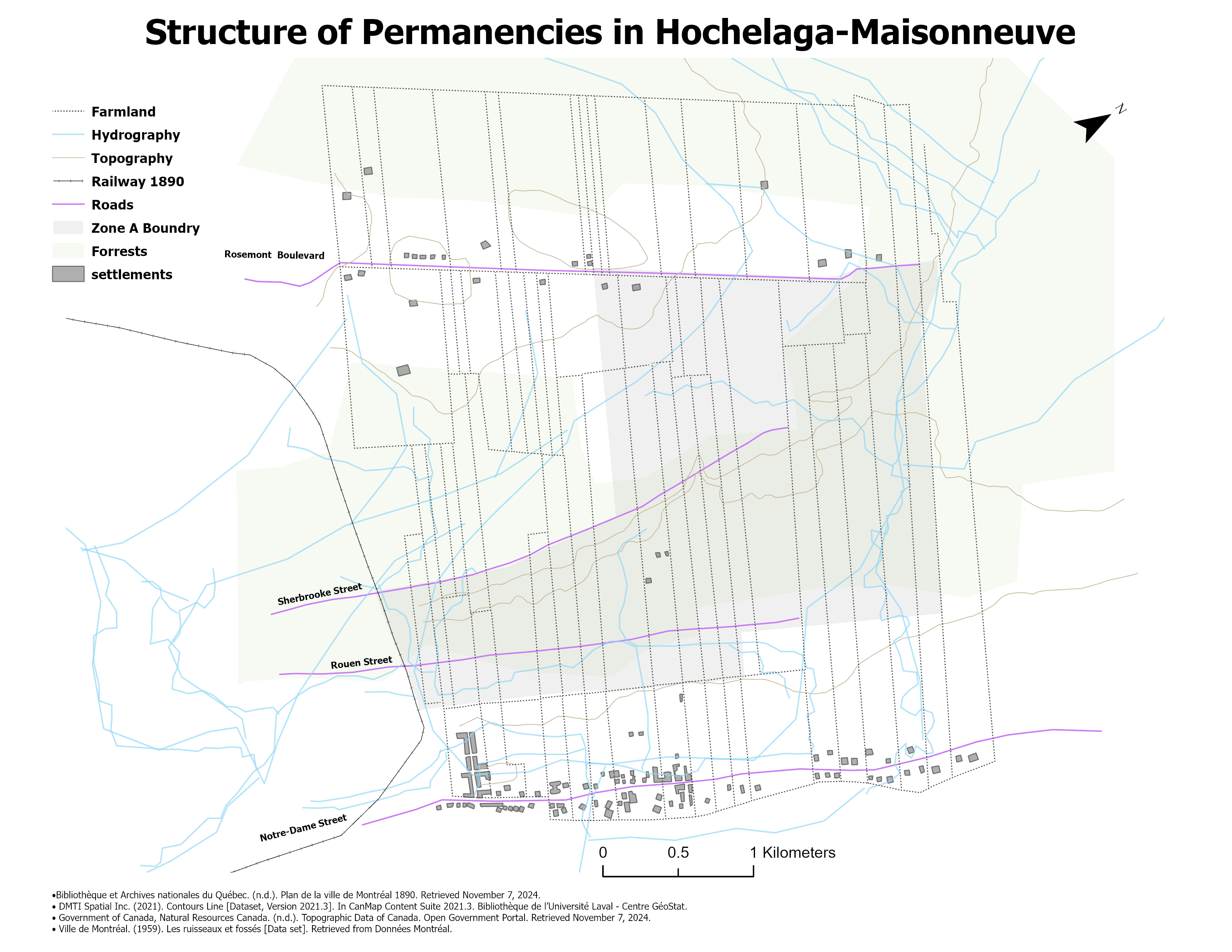 Early development followed Notre-Dame Street, shaping the area’s initial urban form.